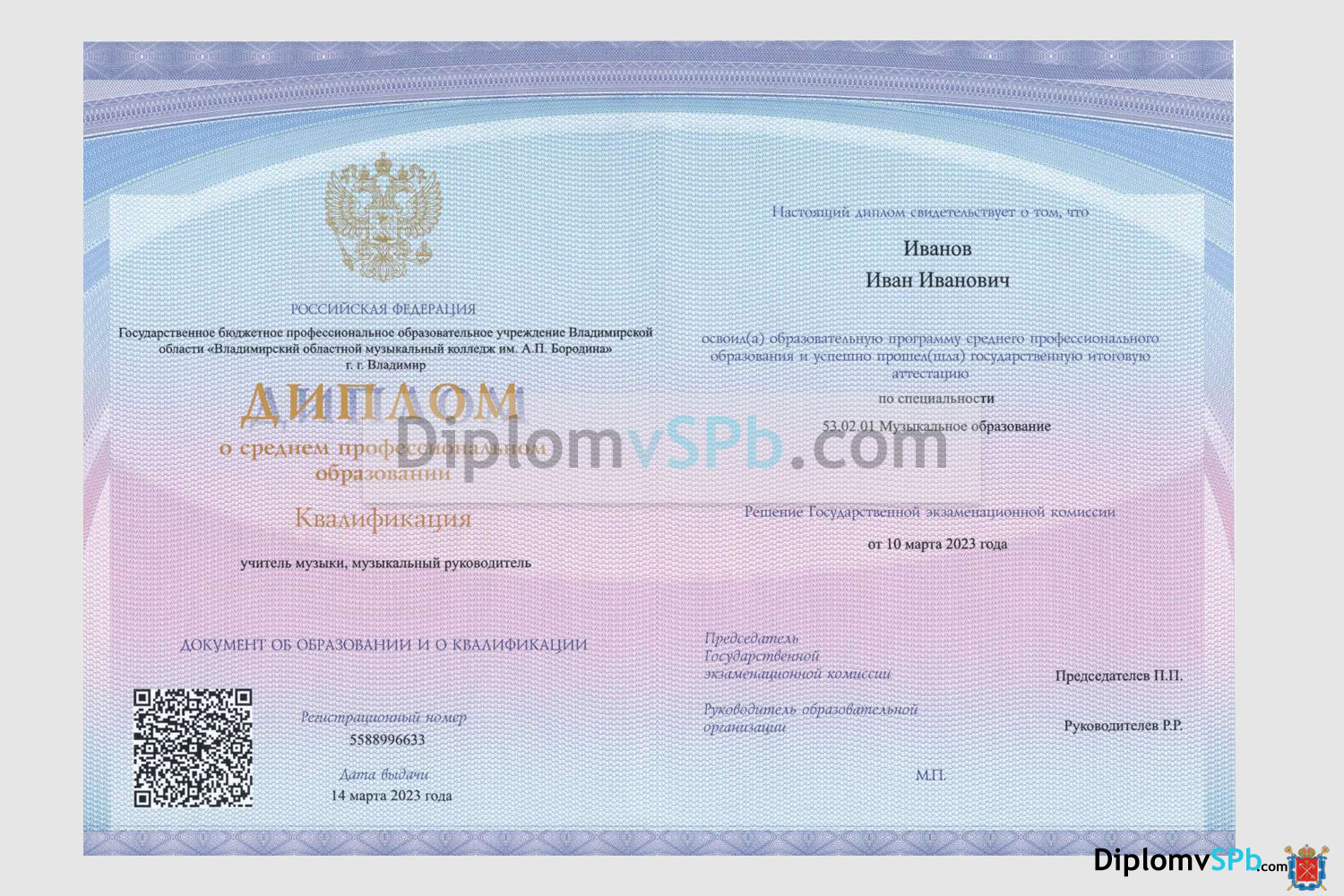 Обращайтесь! Для оформления диплома о среднем специальном образовании в соответствии с госстрандартами и на настоящем бланке свяжитесь с нами удобным для Вас способом: по телефону в Санкт-Петербурге 8 (981) 281-09-02, е-мейл mail@diplomvspb.ru, через Telegram @diplomvspb или оформив онлайн заказ по кнопке внизу. Доставка по Санкт-Петербургу осуществляется бесплатно и без предоплаты в короткие сроки.